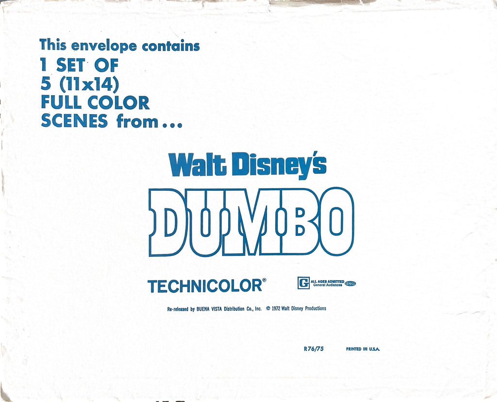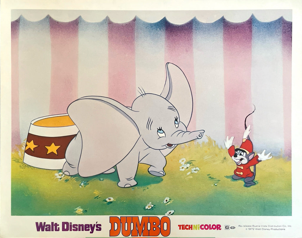 Original 1976 Re-release US Lobby Card Set of 5 cards for the classic 1941 Ben Sharpsteen Walt Disney family animated circus elephant cartoon.